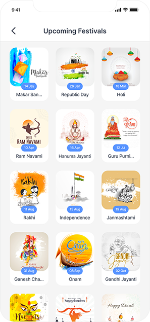 Festival Poster are avilable in Hindi, English, Gujarati, Marathi, Tamil etc languages. Includes Poster Text in Indian regional languages for the users.