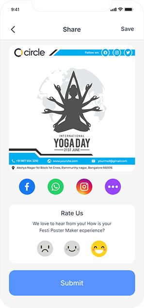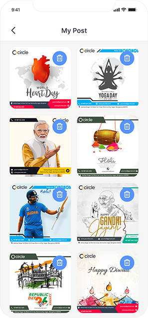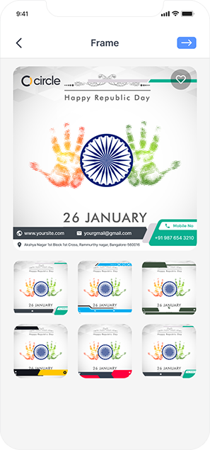 Add your own Photo from Phone Gallery and Set in the Readymade Frame Layout with Company Details like Business Logo, Name, Mobile Number, Gmail ID, Website & Address.